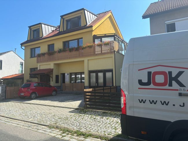 kontaktní zateplovací systém s obkladem z klinkerů, klempířské práce, sádrokatony, podlahářské práce, realizace 2023/2024