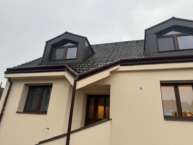 kontaktní zateplovací systém, úprava oplechování a zateplení vikýřů, klempířské práce, realizace 2024